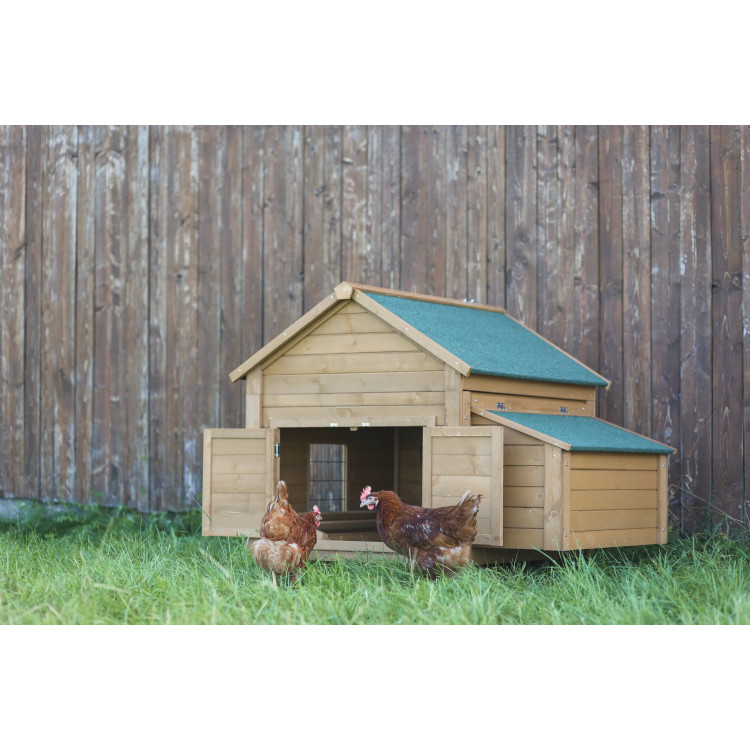 Tyúkól ülőrudával tyúkoknak. Csatlakoztatható a nyúl- és tyúkólhoz . A tyúkól teteje zsanéros és fedett.