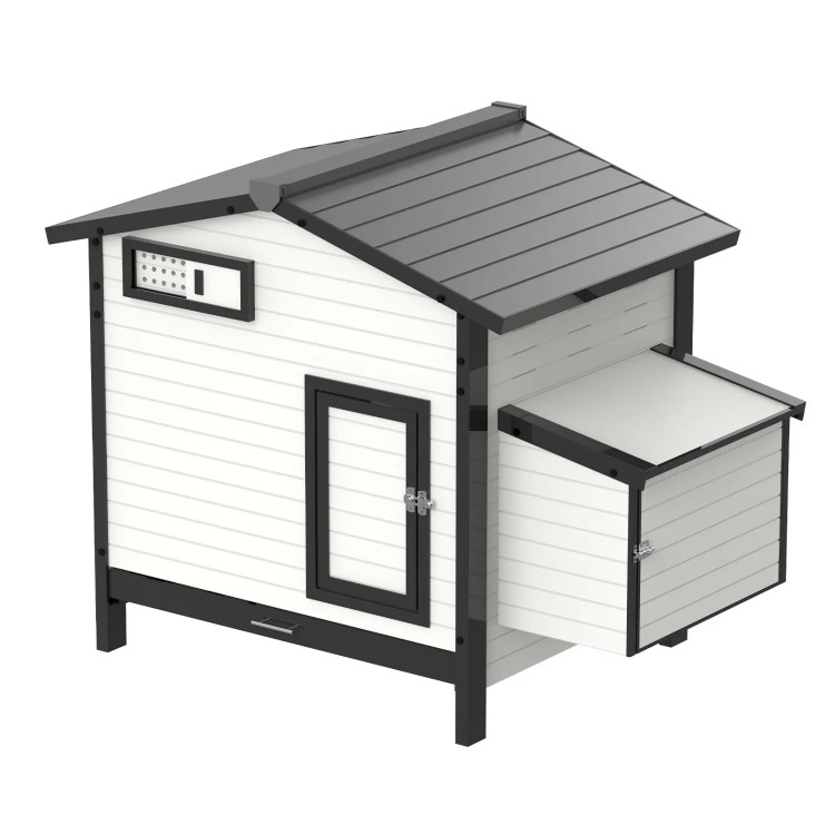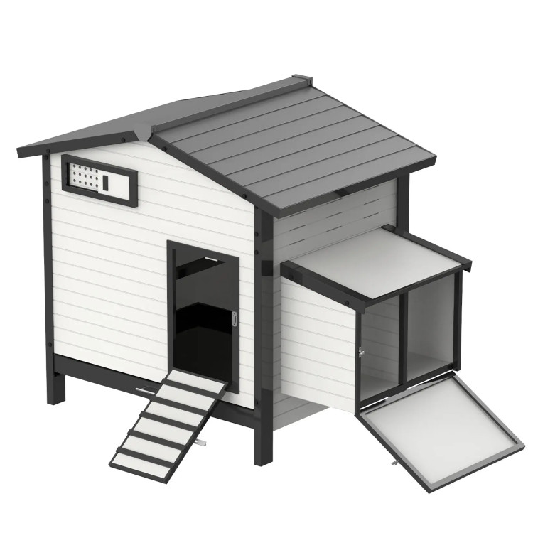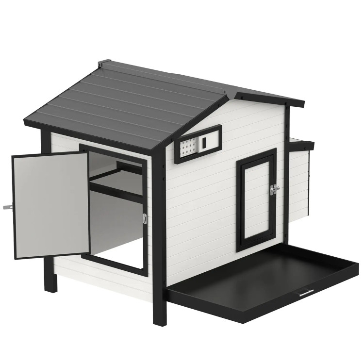 A szerkezet állítható szellőztetővel rendelkezik a légáramlás elősegítése és az állatok jólétének javítása érdekében. Az ólat úgy tervezték, hogy biztonságos és kényelmes helyet biztosítson a tyúkok számára, miközben praktikus marad a gazdálkodó számára a napi műveletek során.