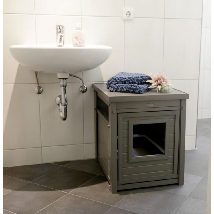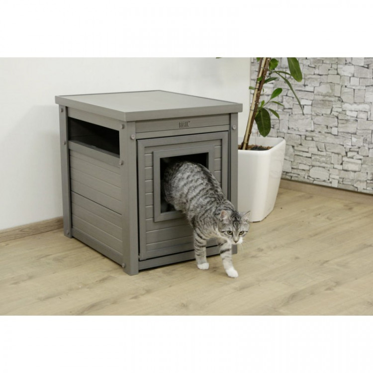 Egy olyan macskaalom-szekrényt kap, amely a szoba berendezésébe is beleolvad, mert úgy néz ki, mint egy normál bútordarab. Így a macska WC-t praktikusabb helyre teheti, anélkül hogy a helyiség „technikai” jellegűvé válna. A szekrény közben a macskának is saját, elkülönített teret ad.
