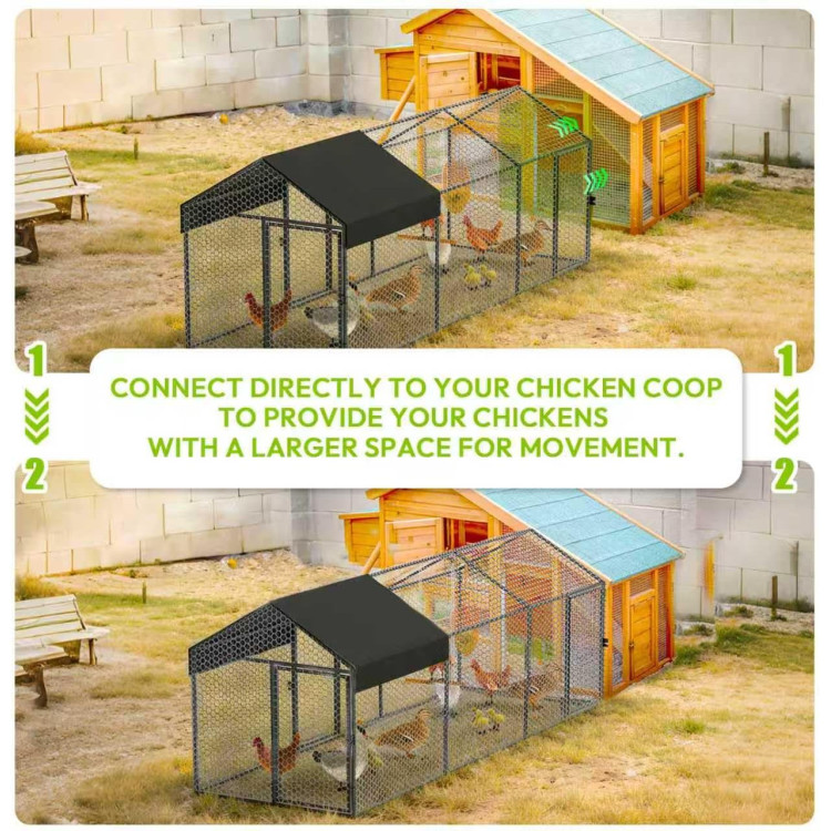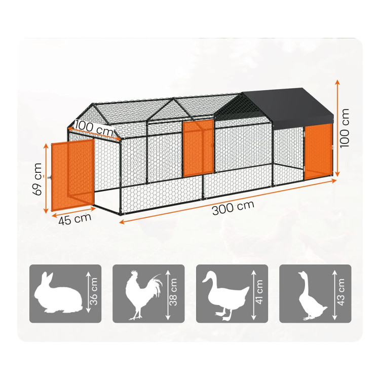 300 cm hosszúságával és akár 100 cm magasságával a kifutó rengeteg helyet biztosít az állatok természetes mozgásához anélkül, hogy túl sok helyet foglalna el a kertben. Ideális kis és közepes méretű gazdaságok számára.