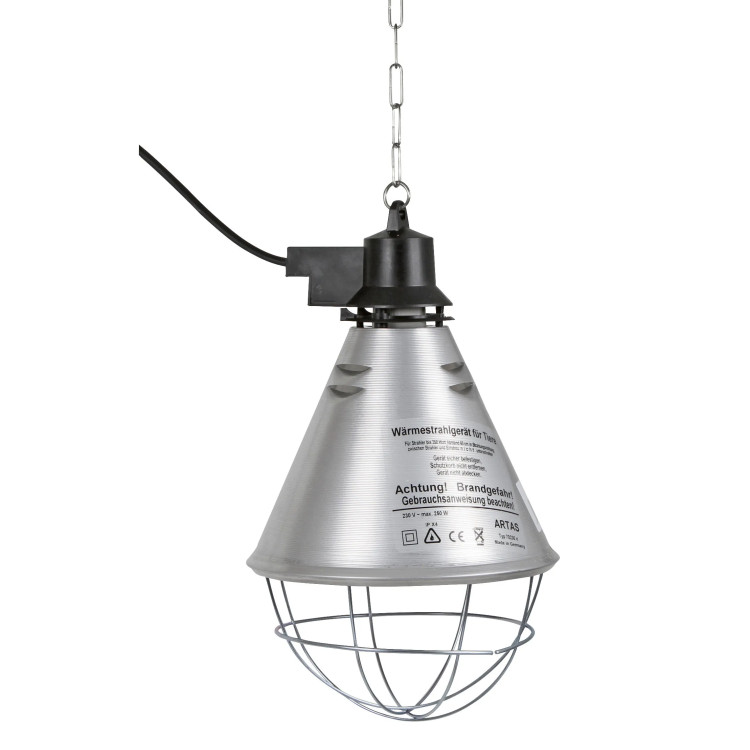 Az Artas típusú infralámpa állatok melegítésére szolgál – leggyakrabban malacok és baromfi számára. Kis létszámú tartásban kiválthatja a műkeltető tyúkot, a fél üzemmódra kapcsolható kapcsolóval pedig könnyen a mindenkori igényhez igazíthatja a rámelegítés intenzitását. Választhat 2,5 m-es vagy 5 m-es kábellel szerelt változatot. A hőt fény formájában adja le; a leírás szerint ez a sugárzó hő mélyebben hatol az állatok testébe, mint a hagyományos fém, műanyag vagy kerámia fűtőtestek és radiátorok melege. A megadott hullámhossz kb. 1200 nm, és a leírt hatások között szerepel a vérkeringés és az immunitás támogatása, a biokémiai aktivitások és a szövetek ellenálló képességének fokozása, valamint a növekedés gyorsítása. A gyakorlatban ez célzott rámelegítést jelent azokra a zónákra, ahol a kicsik pihennek.