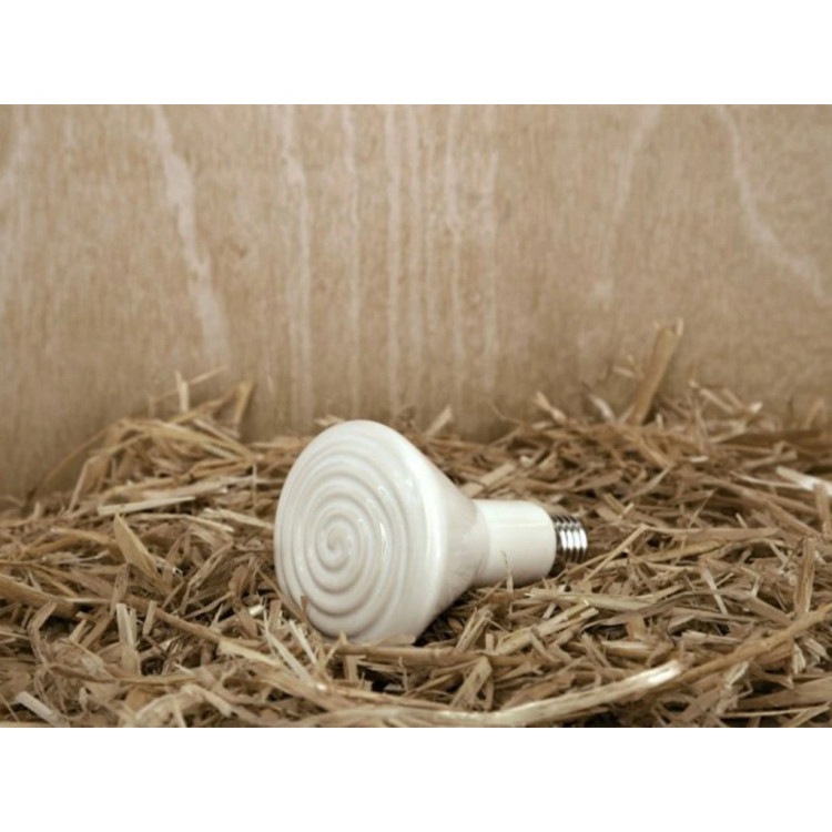 A kerámia izzó egy speciális fűtőelem, amely csak hőt bocsát ki, fényt nem . Ez ideálissá teszi csibék kikelése utáni neveléséhez, keltetőkben, keltetőkben vagy a hideg hónapokban a tyúkól kiegészítő fűtéseként.