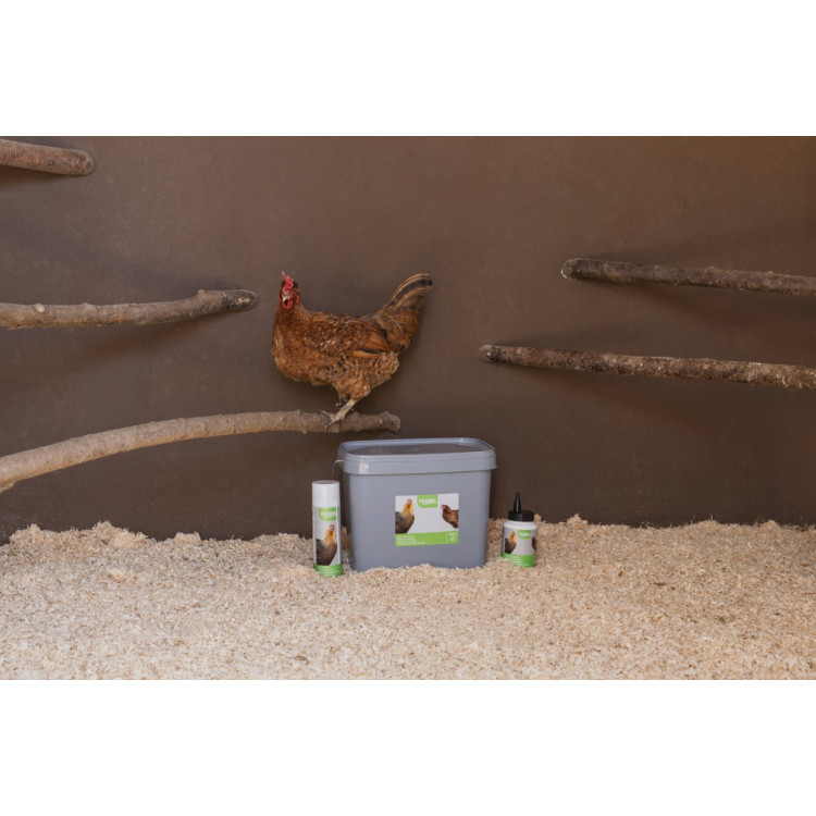 A por állagú változatokhoz képest a spray pontosabb és kényelmesebb felvitelt tesz lehetővé felesleges porzás nélkül. Különösen hasznos, ha a tyúkólban vagy más tartási helyen célzottan, gyorsan és tisztán kell kezelni egy-egy részt.