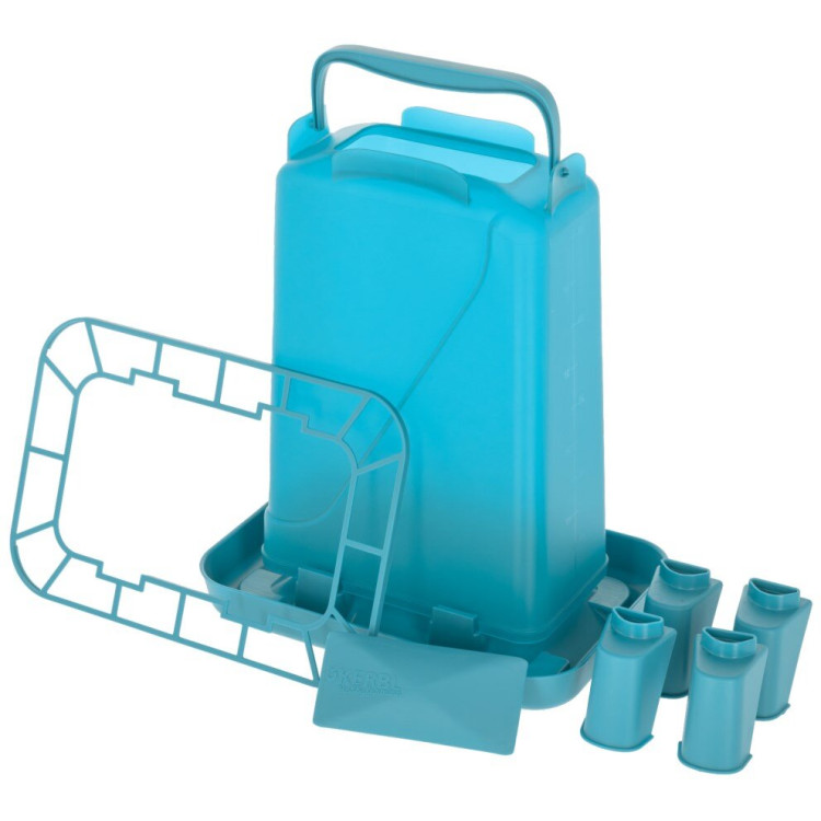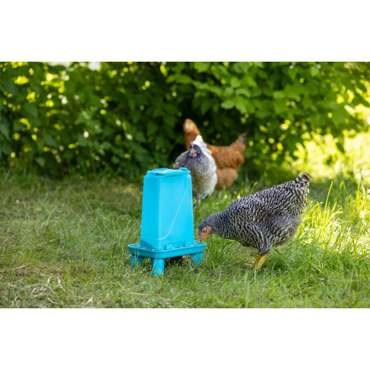 A 3,5 literes, téglalap alakú baromfi etető ideális a csirkék és más kisebb baromfik mindennapi etetéséhez. A beépített takarmánypazarlást gátló rács segít csökkenteni a takarmány szétszóródását, a lábak pedig stabilabbá teszik az etetőt, és magasabban tartják a takarmányt a padlótól. A vásárló színváltozatot is választhat: kék, zöld, rózsaszín vagy fehér.