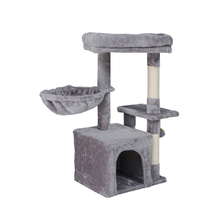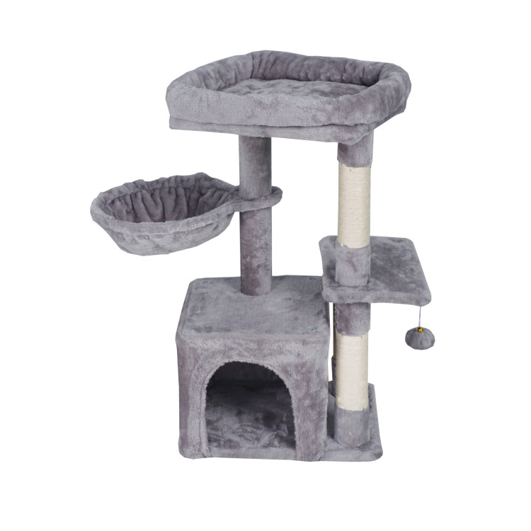 - Felszereltség háziállatai számára : A kaparófa több pihenőhelyet biztosít - egy teljes értékű házikót, egy függőágyat és több emelvényt.