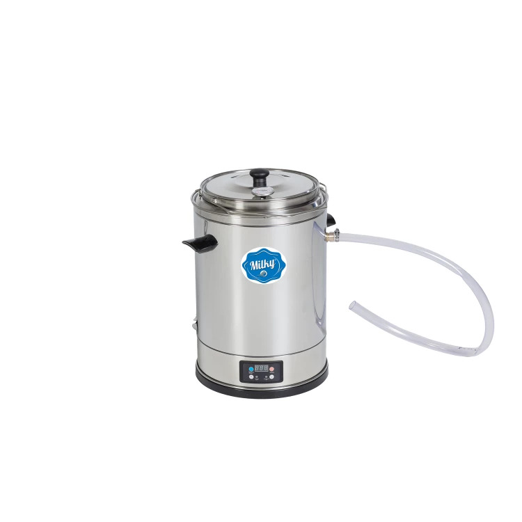Ez az egyszerű, dupla köpenyű, 15 literes mini pasztőröző tökéletes kiegészítője lehet bármely háztartásnak. Univerzális kazán, amely nemcsak pasztőrözésre, hanem sajt és joghurt előállítására is használható. A 2,8 kW-os fűtőelemnek köszönhetően gyorsan, körülbelül egy óra alatt képes felmelegíteni a közeget 4°C kezdeti hőmérsékletről 82°C maximális hőmérsékletre. A mini pasztőröző 230V-on működik, és egy reset gombbal is fel van szerelve, amely lehetővé teszi a készülék egyszerű újraindítását, ha szükséges.