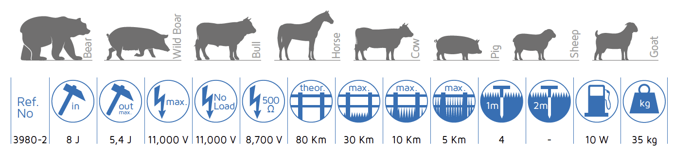 A kerítés alkalmas haszonállatok és vadon élő állatok védelmére. A 11 000 V-os magas feszültségnek köszönhetően megbízható védelmet biztosít még igényesebb alkalmazásokban is.