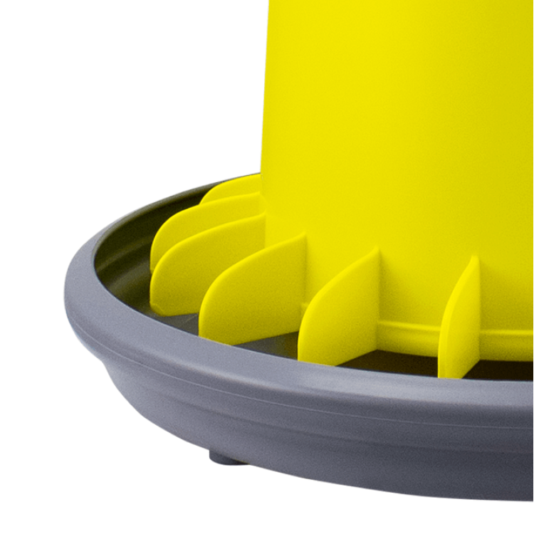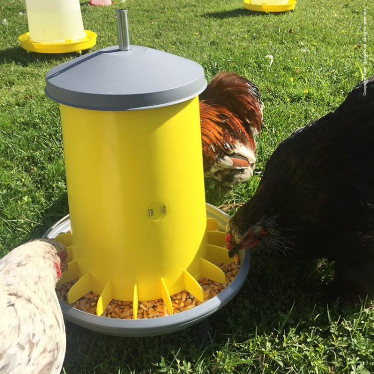 - Kevesebb kiömlés, nagyobb megtakarítás : A speciális kiömlésgátló fedelek megakadályozzák, hogy a tyúkok a csőrükkel kiássák a takarmányt. A takarmány ott marad, ahová való – a tálban, nem az alomban.
