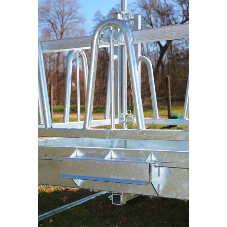 A szarvasmarhákhoz és lovakhoz való szögletes bálaetető praktikus megoldás széna etetéséhez kerek és téglalap (szögletes) bálákból, legfeljebb 1,4 m hosszúságig vagy átmérőig. 8 etetőhelyet biztosít, a magasság pedig az állatok típusához és méretéhez igazítható, így az etetés kényelmesebb és biztonságosabb. Két oldal könnyen nyitható, ezért a bála betöltése gyors, felesleges mozgatás nélkül. A szerkezet magas hőmérsékleten tűzihorganyzott felületkezelést kapott, és úgy lett kialakítva, hogy a takarmányveszteség minimális legyen.