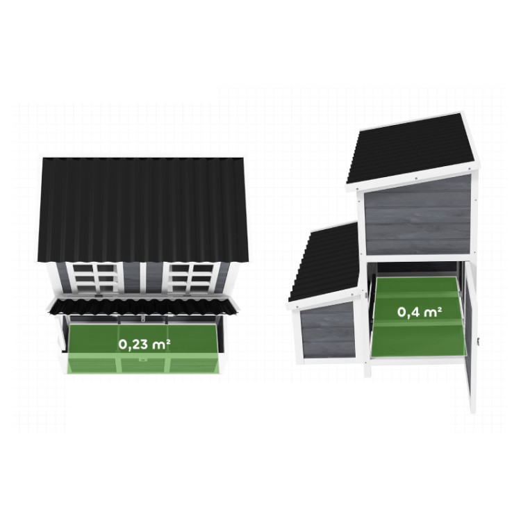 A Tampere tyúkól a tér, a funkcionalitás és a kényelem ideális kombinációja – mind a tyúkok, mind a gazdálkodó számára. Nagyszerű választás mindazok számára, akik egy könnyen karbantartható és stílusos tyúkólat szeretnének a kertjükbe.