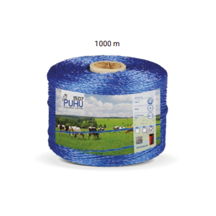 PUHU vezetőképes kábel 1000 m hosszúsággal. A rozsdamentes acél vezetőknek köszönhetően biztosítja az elektromos impulzusok stabil átvitelét és hosszú élettartamot még igényes kültéri körülmények között is.